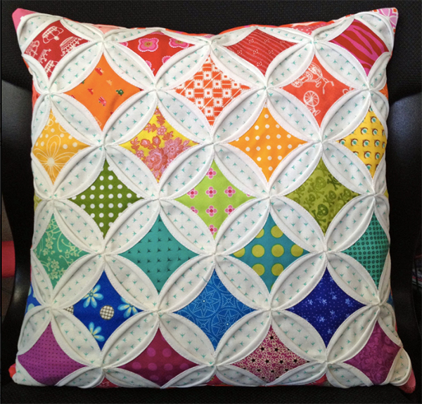 С помощью этого блока можно собирать шикарные по виду полотна для одеял, покрывал, подушек, штор, которые будут выглядеть как мозаики и витражи.