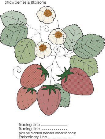Ягоды клубники - лоскутная аппликация с вышивкой - схема.