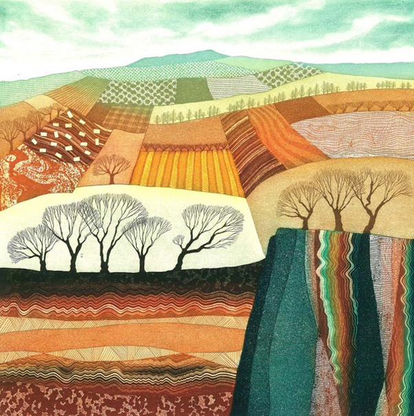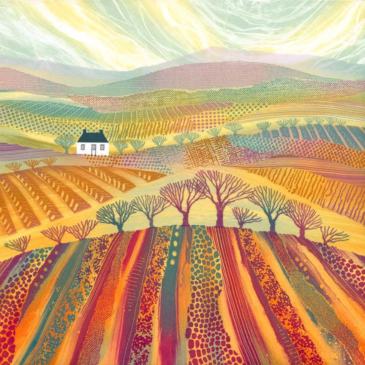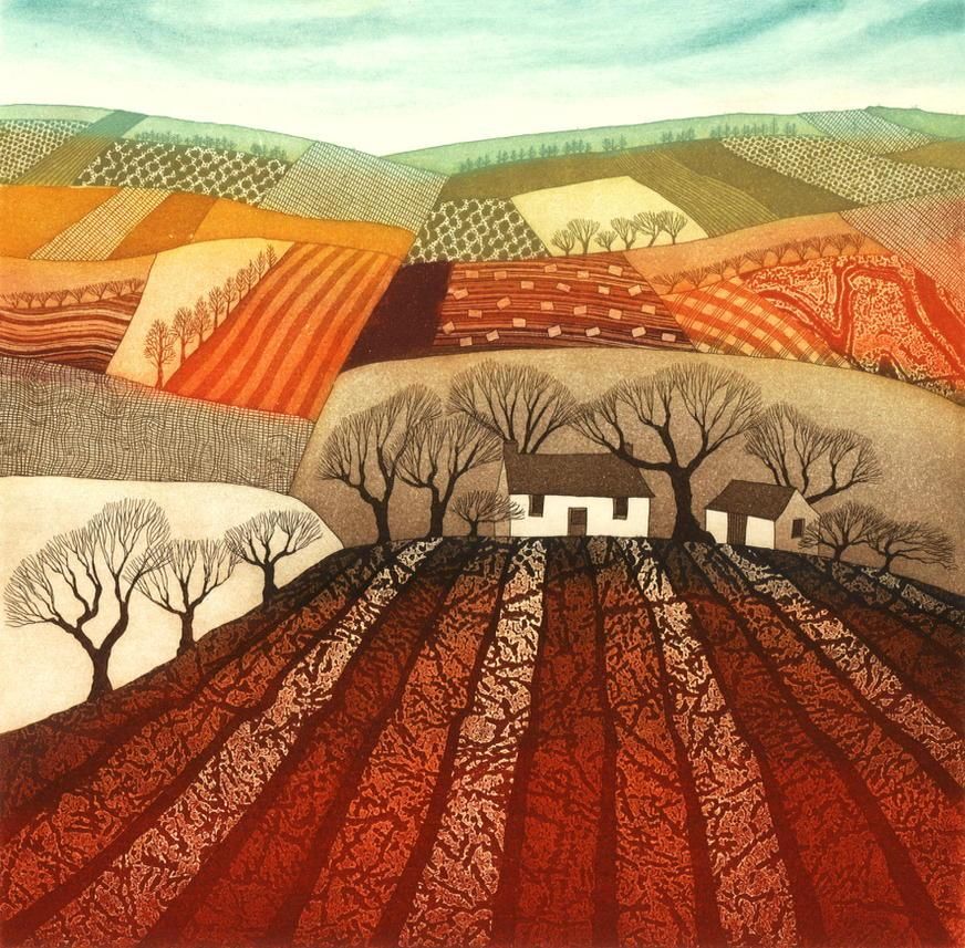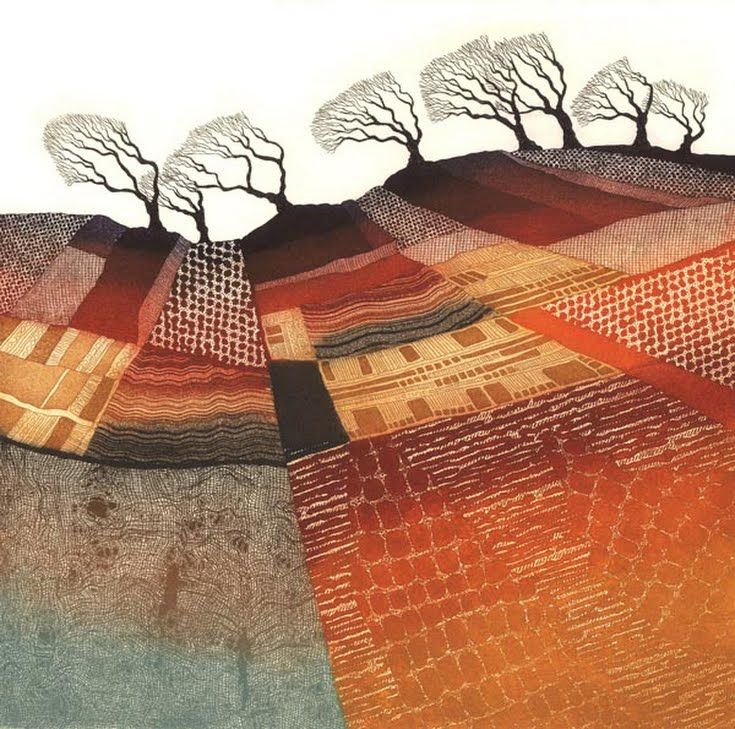 Текстильные мотивы в творчестве английской художницы Ребекки Винсент (Rebecca Vincent) поражают своей красотой и изяществом. Кажется, они как будто созданы из тканей! На самом деле это офорты, но опытные мастера лоскутного шитья могут почерпнуть в этих пейзажах множество идей! | |