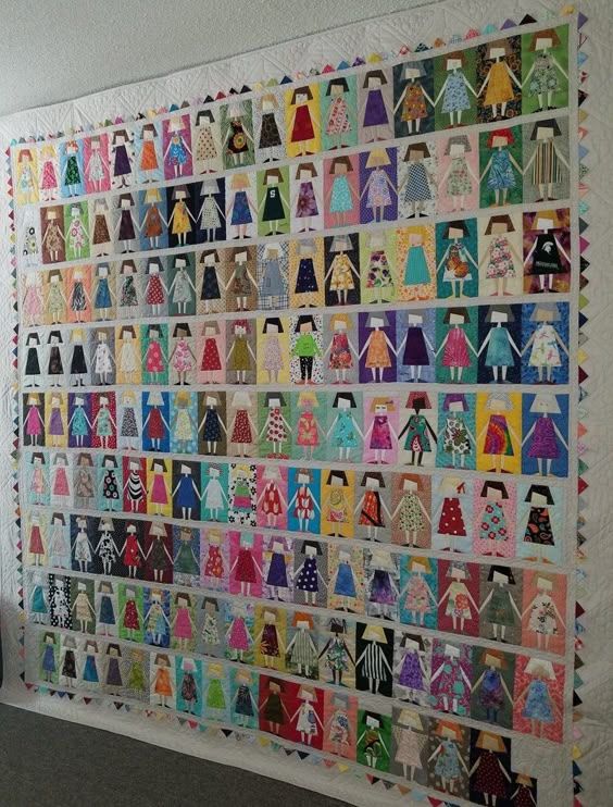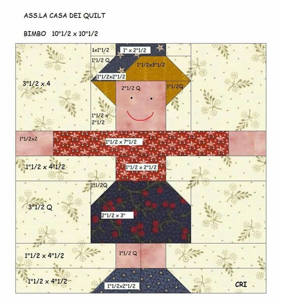 Схемы лоскутного шитья с человечками - взявшись за руки. И пример квилта. | |