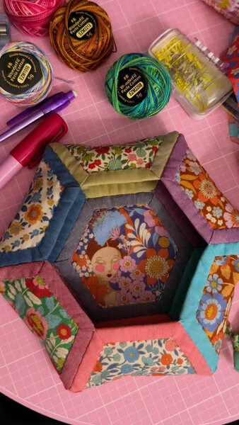 Лоскутные сумочки и шкатулка из шестигранников