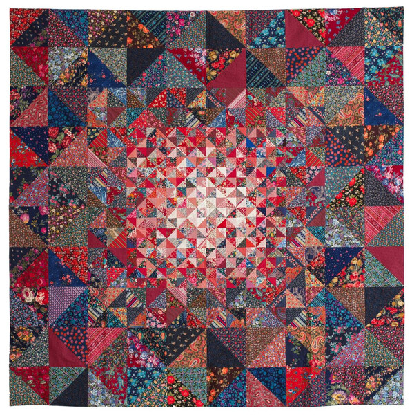 Эти милые калейдоскопы, похожие на мозаику, - сделаны полностью вручную в технике английского шитья по бумажным шаблонам или по картону. Вначале блок полностью расчерчивается на плотной бумаге, затем элементы вырезаются и каждый из них прикрепляется к ткани определенного цвета. Припуски подгибаются с помощью наметки. А потом все детали кропотливо сшиваются друг с другом потайным швом. Трудоемко! Но очень красиво! И еще: это своего рода медитация. » |